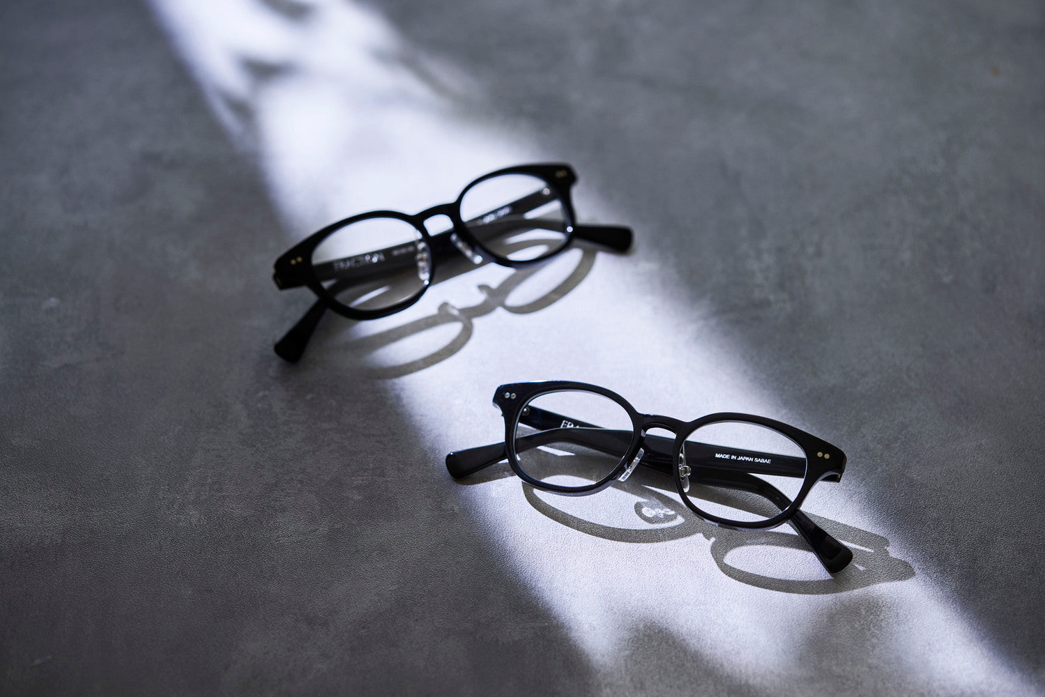 このデザインを形にするのは、福井県鯖江市にある、フレーム製造を一貫して行える数少ない工房。切削、カシメ加工、泥磨きなど、160以上の工程を経て仕上げられたフレームは、大量生産のプラスチック製フレームとは一線を画す、耐久性と深みのある艶を備えています。量産型フレームにはない温もりが宿る、特別な一本。