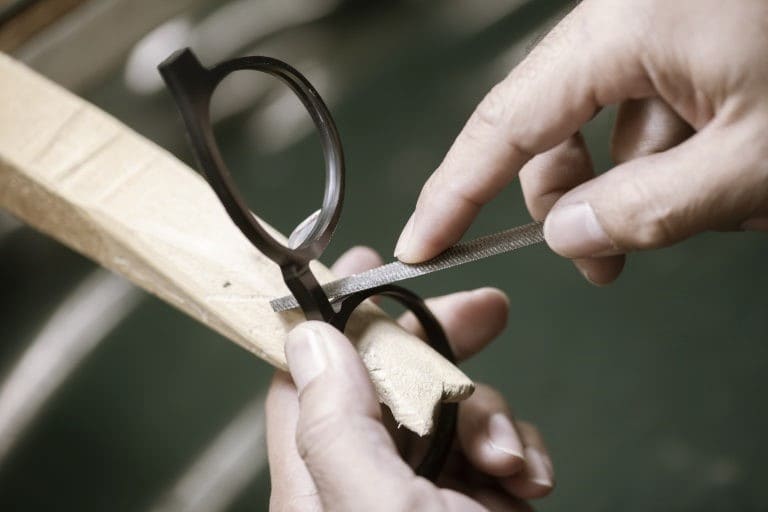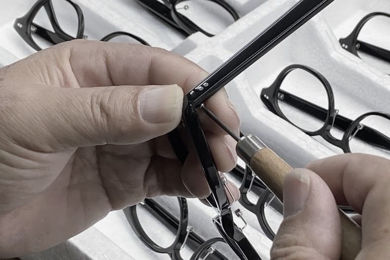 一生ものとして愛用してほしいから、品質には妥協しません。 だからこそ、すべてのフレームで何度も図面修正とサンプル製作を繰り返し、細部まで調整を重ねています。デザインと装着感のわずかな違いを見極め、納得できる一本へと仕上げていきます。